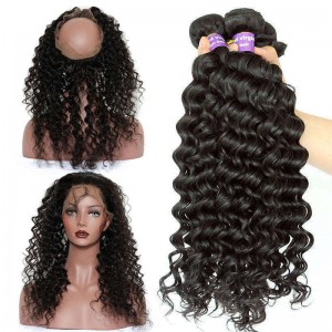 360 Lace Frontal Wigs Brazilian Virgin Hair Deep Wave 360 Circle Lace Frontal With Two Bundles