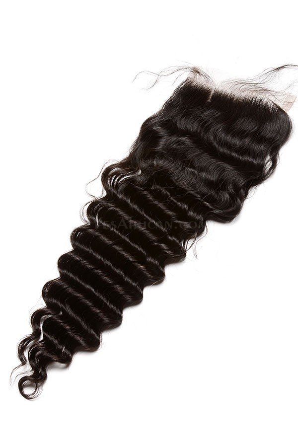Brazilian Virgin Hair Deep Wave Free Part Lace Closure 4x4inches Natural Color