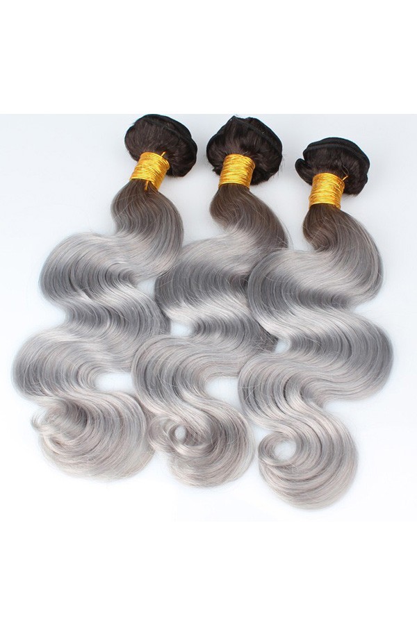 Brazilian Virgin Human Hair Ombre Hair Weave Color 1b/#Grey Body Wave 3 Bundles