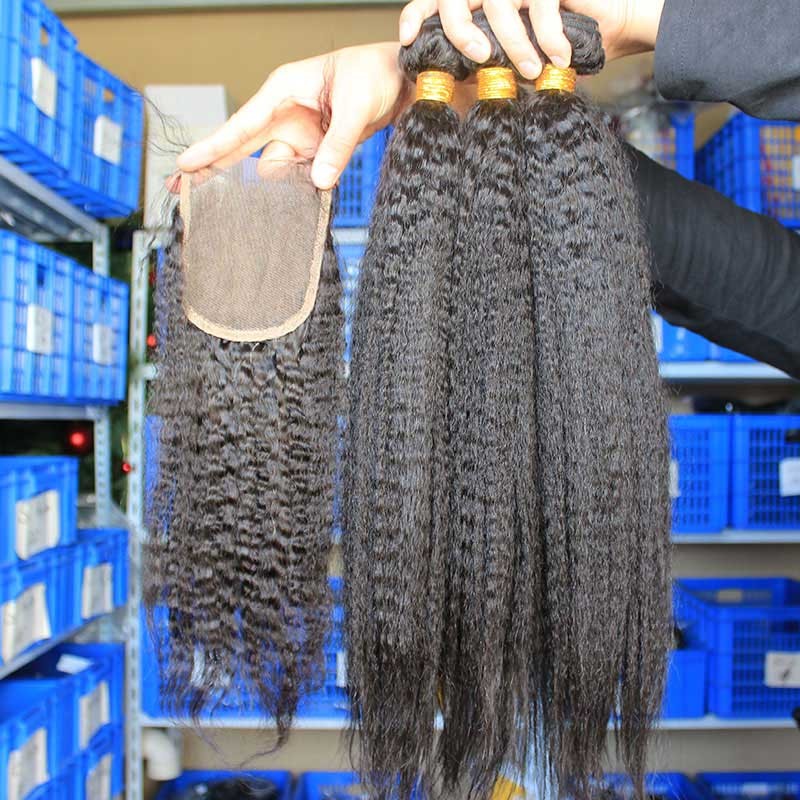 Indian Virgin Hair Kinky Straight Free Part Lace Closure with 3pcs Weaves
