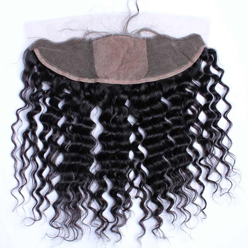 Natural Color Deep Wave Brazilian Virgin Hair Silk Base Lace Frontal Closure 13x4inches